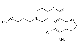 METABOLISM SEROTONIN-4 (5-HT4) RECEPTOR AGONIST TREATMENT OF CHRONIC IDIOPATHIC CONSTIPATION (CIC) | ORAL | Cmax 19 NANOMOLAR Tmax 2.5 HOUR F 90 PERCENT VD 567 LITER PPB 30 PERCENT Cl 19 LITER / HOUR HT 24 HOUR SOLUBILITY HIGHLY SOLUBLE IN ACIDIC AQUEOUS MEDIA | SEROTONIN-4 (5-HT4) | 5-hydroxytryptamine receptor 4 UNIPROT Q13639 HTR4 more at DrugCentral | EMA ANSM (in French) Inxight Drugs Dailymed Drugs.com VigiAccess SIDER side effects Chemical Probes Portal ChEMBL BindingDB DrugBank |