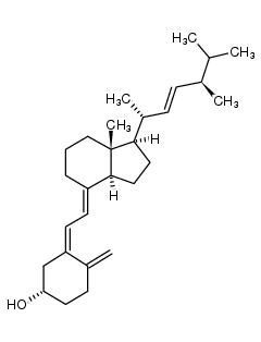 METABOLISM VITAMIN D2 ANTIHYPOCALCEMIC AGENTS TREATMENT OF HYPOPARATHYROIDISM AND REFRACTORY RICKETS ALSO KNOWN AS VITAMIN D RESISTANT RICKETS,AND FAMILIAL HYPOPHOSPHATEMIA DIFFERENT METABOLIC FATES OF VITAMINS D2 AND D3 (PMID17023693) | ORAL INJECTION INTRAVENOUS | SOLUBILITY INSOLUBLE IN WATER | VITAMIN D3 RECEPTOR PDB 3CZH (CRYSTAL STRUCTURE OF CYP2R1 IN COMPLEX WITH VITAMIN D2) LIGAND CODE = D2V (link to the list of PDB complexes) Download experimental 3D coordinates of D2V with added hydrogens | Vitamin D3 receptor UNIPROT P11473 VDR more at DrugCentral | EMA ANSM (in French) Inxight Drugs Dailymed Drugs.com VigiAccess SIDER side effects Chemical Probes Portal ChEMBL BindingDB DrugBank |