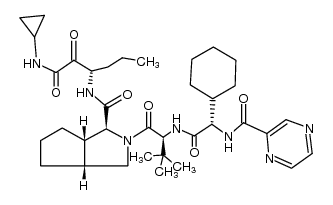 HEPATITIS C VIRUS (HCV) NS3/4A PROTEASE INHIBITOR GENOTYPE 1 CHRONIC HEPATITIS C (CHC) | ORAL | Cmax 5.16 MICROMOLAR (750 MILLIGRAM) VD 252 LITER PPB 67 PERCENT Cl 32.4 LITER / HOUR HT 4.4 HOUR (750 MILLIGRAM) SOLUBILITY IN WATER OF 0.0047 MILLIGRAM / MILLILITER | NS3/4A PROTEASE | Hepatitis C virus serine protease, NS3,NS4A UNIPROT A3EZI9 NS3 more at DrugCentral | EMA ANSM (in French) Inxight Drugs Dailymed Drugs.com VigiAccess SIDER side effects Chemical Probes Portal ChEMBL BindingDB DrugBank |