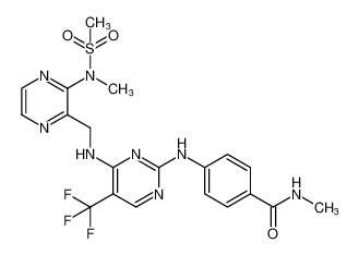 | DEFACTINIB | ANTINEOPLASTIC FAK AND PROLINE-RICH TYROSINE KINASE-2 (PYK2) KINASE INHIBITOR TREATMENT OF OVARIAN CANCER | ORAL | Tmax 4 HOUR VD 1560 LITER PPB 90 PERCENT Cl 69 LITER / HOUR HT 9 HOUR SOLUBILITY INSOLUBLE IN WATER | FAK PYK2 PDB 5MAH (CRYSTAL STRUCTURE OF MELK IN COMPLEX WITH AN INHIBITOR) LIGAND CODE = 7KD (link to the list of PDB complexes) Download experimental 3D coordinates of 7KD with added hydrogens | - more at DrugCentral | EMA ANSM (in French) Inxight Drugs Dailymed Drugs.com VigiAccess SIDER side effects Chemical Probes Portal ChEMBL BindingDB DrugBank |