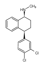 NERVOUS SYSTEM ANTIDEPRESSANT SELECTIVE SEROTONIN REUPTAKE INHIBITORS (SSRIS) | ORAL | Cmax 464 NANOMOLAR Tmax 6.4 HOUR PPB 98 PERCENT HT 26 HOUR SOLUBILITY SLIGHTLY SOLUBLE IN WATER | SEROTONIN TRANSPORTER PDB 6F6N (CRYSTAL STRUCTURE OF EBOLAVIRUS GLYCOPROTEIN IN COMPLEX WITH SERTRALINE) LIGAND CODE = SRE (link to the list of PDB complexes) Download experimental 3D coordinates of SRE with added hydrogens | Sodium-dependent serotonin transporter UNIPROT P31645 SLC6A4 more at DrugCentral | EMA ANSM (in French) Inxight Drugs Dailymed Drugs.com VigiAccess SIDER side effects Chemical Probes Portal ChEMBL BindingDB DrugBank |