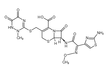 ANTIINFECTIVES ANTIBIOTIC ANTIBACTERIAL CEPHALOSPORINS | INTRAMUSCULAR INTRAVENOUS INJECTION | VD 9.6 LITER PPB 85 PERCENT Cl 1 LITER / HOUR (65 KILOGRAM) HT 7.25 LITER / HOUR SOLUBILITY IS READILY SOLUBLE IN WATER | GAMMA-GLUTAMYLTRANSPEPTIDASE PDB 5NZX (CRYSTAL STRUCTURE OF DNA CROSS-LINK REPAIR PROTEIN 1A IN COMPLEX WITH CEFTRIAXONE (ALTERNATIVE SITE)) LIGAND CODE = 9F2 (link to the list of PDB complexes) Download experimental 3D coordinates of 9F2 with added hydrogens | Peptidoglycan synthase FtsI UNIPROT P0AD68 ftsI -- Penicillin-binding protein 1A UNIPROT P02918 mrcA more at DrugCentral | EMA ANSM (in French) Inxight Drugs Dailymed Drugs.com VigiAccess SIDER side effects Chemical Probes Portal ChEMBL BindingDB DrugBank |