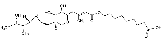 DERMATOLOGICALS ANTIBIOTIC ANTIBACTERIAL | TOPICAL NASAL | HT 0.5 HOUR | ISOLEUCYL-TRNA SYNTHETASE PDB 1FFY (INSIGHTS INTO EDITING FROM AN ILE-TRNA SYNTHETASE STRUCTURE WITH TRNA(ILE) AND MUPIROCIN) LIGAND CODE = MRC (link to the list of PDB complexes) Download experimental 3D coordinates of MRC with added hydrogens | Isoleucine--tRNA ligase UNIPROT P41972 ileS -- Isoleucine--tRNA ligase UNIPROT Q99YW3 ileS more at DrugCentral | EMA ANSM (in French) Inxight Drugs Dailymed Drugs.com VigiAccess SIDER side effects Chemical Probes Portal ChEMBL BindingDB DrugBank |