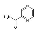 ANTIINFECTIVES TUBERCULOSTATIC ANTIFUNGAL ANTIBIOTIC ANTIBACTERIAL ANALOGUE OF NICOTINAMIDE | ORAL | Cmax 227.8 MICROMOLAR F 96.8 PERCENT PPB 10 PERCENT Cl 3.82 LITER / HOUR HT 10 HOUR SOLUBILITY SPARINGLY SOLUBLE IN WATER | MYCOBACTERIAL PYRAZINAMIDASE (PNCA) PDB 5FPD (STRUCTURE OF HEAT SHOCK-RELATED 70KDA PROTEIN 2 WITH SMALL-MOLECULE LIGAND PYRAZINE-2-CARBOXAMIDE (AT513) IN AN ALTERNATE BINDING SITE.) LIGAND CODE = PZA (link to the list of PDB complexes) Download experimental 3D coordinates of PZA with added hydrogens | 3-oxoacyl-ACP synthase more at DrugCentral | EMA ANSM (in French) Inxight Drugs Dailymed Drugs.com VigiAccess SIDER side effects Chemical Probes Portal ChEMBL BindingDB DrugBank |