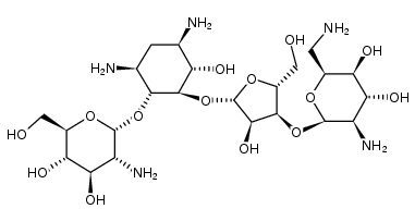 METABOLISM AMINOGLYCOSIDE ANTIBACTERIAL ANTIAMEBIC INTESTINAL ANTIINFECTIVES | ORAL | SOLUBILITY SOLUBLE IN WATER | RIBOSOMAL DECODING A-SITE BACTERIAL 16S RRNA PDB 5BR8 (AMBIENT-TEMPERATURE CRYSTAL STRUCTURE OF 30S RIBOSOMAL SUBUNIT FROM THERMUS THERMOPHILUS IN COMPLEX WITH PAROMOMYCIN) LIGAND CODE = PAR (link to the list of PDB complexes) Download experimental 3D coordinates of PAR with added hydrogens | Unknown more at DrugCentral | EMA ANSM (in French) Inxight Drugs Dailymed Drugs.com VigiAccess SIDER side effects Chemical Probes Portal ChEMBL BindingDB DrugBank |