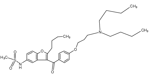 CARDIOVASCULAR ANTIARRHYTHMIC MULTI-CHANNEL BLOCKER THAT AFFECTS CALCIUM, POTASSIUM AND SODIUM CHANNELS | ORAL | F 15 PERCENT VD 1400 LITER PPB 98 PERCENT Cl 140 LITER / HOUR HT 16 HOUR SOLUBILITY PRACTICALLY INSOLUBLE IN WATER | IONIC CHANNELS | Potassium,sodium hyperpolarization-activated cyclic nucleotide-gated channel 1 UNIPROT O60741 HCN1 -- Potassium,sodium hyperpolarization-activated cyclic nucleotide-gated channel 2 UNIPROT Q9UL51 HCN2 more at DrugCentral | EMA ANSM (in French) Inxight Drugs Dailymed Drugs.com VigiAccess SIDER side effects Chemical Probes Portal ChEMBL BindingDB DrugBank |