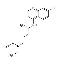 ANTIPARASITIC ANTIMALARIALS | ORAL INJECTION | Cmax 0.513 MICROMOLAR (PMID6661356) VD 9100 LITER (65 KILOGRAM) PPB 55 PERCENT Cl 16 LITER / HOUR (65 KILOGRAM) HT 570 HOUR SOLUBILITY FREELY SOLUBLE IN WATER | DNA LACTATE DEHYDROGENASE PDB 4FGK (OXIDIZED QUINONE REDUCTASE 2 IN COMPLEX WITH CHLOROQUINE) LIGAND CODE = 0TX (link to the list of PDB complexes) Download experimental 3D coordinates of 0TX with added hydrogens | Unknown more at DrugCentral | EMA ANSM (in French) Inxight Drugs Dailymed Drugs.com VigiAccess SIDER side effects Chemical Probes Portal ChEMBL BindingDB DrugBank |