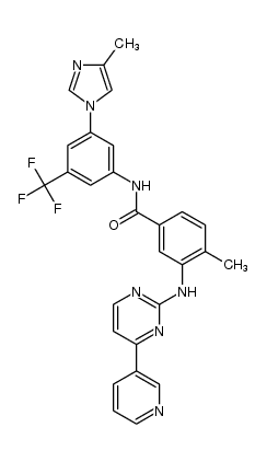ANTINEOPLASTIC PROTEIN KINASE INHIBITORS CHRONIC MYELOID LEUKEMIA (CML) IC50 VALUES AS INDICATED: BCR-ABL (20-60 NM) PDGFR (69 NM) C-KIT (210 NM) CSF-1R (125-250 NM) AND DDR1 (3.7 NM) | ORAL | Tmax 3 HOUR PPB 98 PERCENT HT 17 HOUR SOLUBILITY IN AQUEOUS SOLUTIONS DECREASES WITH INCREASING PH | BCR-ABL TYROSINE KINASE PDB 3CS9 (HUMAN ABL KINASE IN COMPLEX WITH NILOTINIB) LIGAND CODE = NIL (link to the list of PDB complexes) Download experimental 3D coordinates of NIL with added hydrogens | Tyrosine-protein kinase ABL1 UNIPROT P00519 ABL1 more at DrugCentral | EMA ANSM (in French) Inxight Drugs Dailymed Drugs.com VigiAccess SIDER side effects Chemical Probes Portal ChEMBL BindingDB DrugBank |