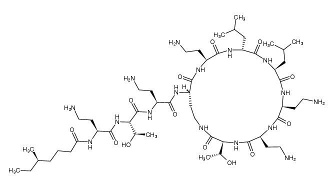 ANTIINFECTIVES ANTIBIOTIC ANTIBACTERIAL POLYMYXIN E DISRUPTS THE BACTERIAL CELL MEMBRANE | ORAL OTIC | Cmax 1.99 MICROMOLAR (PMID19433570) VD 189 LITER (PMID19433570) Cl 13.7 LITER / HOUR (PMID19433570) HT 14.4 HOUR (PMID19433570) | MEMBRANE | Unknown more at DrugCentral | EMA ANSM (in French) Inxight Drugs Dailymed Drugs.com VigiAccess SIDER side effects Chemical Probes Portal ChEMBL BindingDB DrugBank |