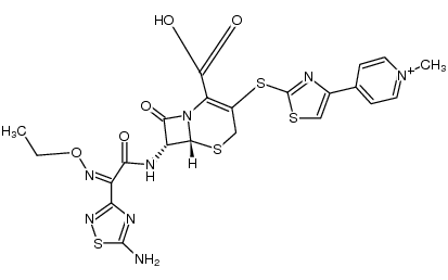 ANTIINFECTIVE ANTIBIOTIC ANTIBACTERIAL CEPHALOSPORINS | - | | PENICILLIN-BINDING PROTEIN 1B PENICILLIN-BINDING PROTEIN 1A PENICILLIN-BINDING PROTEIN 2A PDB 3ZG0 (CRYSTAL STRUCTURE OF CEFTAROLINE ACYL-PBP2A FROM MRSA WITH NON- COVALENTLY BOUND CEFTAROLINE AND MURAMIC ACID AT ALLOSTERIC SITE OBTAINED BY COCRYSTALLIZATION) LIGAND CODE = 1W8 (link to the list of PDB complexes) Download experimental 3D coordinates of 1W8 with added hydrogens | Bacterial penicillin-binding protein UNIPROT P02918 mrcA more at DrugCentral | EMA ANSM (in French) Inxight Drugs Dailymed Drugs.com VigiAccess SIDER side effects Chemical Probes Portal ChEMBL BindingDB DrugBank |