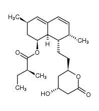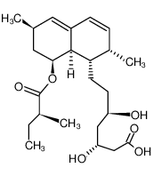 CARDIOVASCULAR HYPOLIPIDEMIC ANTICHOLESTEREMIC AGENTS HYDROXYMETHYLGLUTARYL-COA (HMG-COA) REDUCTASE INHIBITORS | - | Cmax 28.1 NANOMOLAR Tmax 3 HOUR VD 56.5 LITER (65 KILOGRAM) PPB 95 PERCENT Cl 28 LITER / HOUR (65 KILOGRAM) HT 1.4 HOUR | 3-HYDROXY-3-METHYLGLUTARYL-COENZYME A REDUCTASE PDB 3HLG (SIMVASTATIN SYNTHASE (LOVD), FROM ASPERGILLUS TERREUS, S5 MUTANT, S76A MUTANT, COMPLEX WITH LOVASTATIN) LIGAND CODE = LVA (link to the list of PDB complexes) Download experimental 3D coordinates of LVA with added hydrogens | 3-hydroxy-3-methylglutaryl-coenzyme A reductase UNIPROT P04035 HMGCR more at DrugCentral | EMA ANSM (in French) Inxight Drugs Dailymed Drugs.com VigiAccess SIDER side effects Chemical Probes Portal ChEMBL BindingDB DrugBank |