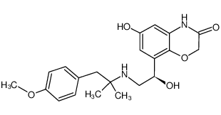 RESPIRATORY SYSTEM SELECTIVE BETA-2 ADRENERGIC AGONISTS BRONCHODILATOR TREATMENT (COPD) | INHALATION | Tmax 0.25 HOUR F 30 PERCENT VD 1110 LITER PPB 60 PERCENT Cl 52.3 LITER / HOUR HT 45 HOUR SOLUBILITY SPARINGLY-SLIGHTLY SOLUBLE IN WATER | BETA2 ADRENERGIC RECEPTOR PDB 8JJL (CRYO-EM STRUCTURE OF THE BETA2-AR-MBRIL, 1B3 FAB, GLUE COMPLEX WITH A FULL AGONIST) LIGAND CODE = DZQ (link to the list of PDB complexes) Download experimental 3D coordinates of DZQ with added hydrogens | Beta-2 adrenergic receptor UNIPROT P07550 ADRB2 more at DrugCentral | EMA ANSM (in French) Inxight Drugs Dailymed Drugs.com VigiAccess SIDER side effects Chemical Probes Portal ChEMBL BindingDB DrugBank |