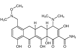 ANTIINFECTIVES TETRACYCLINE- DRUG TREATMENT OF INFLAMMATORY LESIONS OF NON-NODULAR MODERATE TO SEVERE ACNE VULGARIS | ORAL | Tmax 1.75 HOUR VD 94.2 LITER PPB 68.6 PERCENT Cl 3 LITER / HOUR HT 21.5 HOUR | PDB 6XQD (CRYSTAL STRUCTURE OF THE THERMUS THERMOPHILUS 70S RIBOSOME IN COMPLEX WITH SARECYCLINE, UUC-MRNA, AND DEACYLATED P-SITE TRNA AT 2.80A RESOLUTION) LIGAND CODE = V7A (link to the list of PDB complexes) Download experimental 3D coordinates of V7A with added hydrogens | Unknown more at DrugCentral | EMA ANSM (in French) Inxight Drugs Dailymed Drugs.com VigiAccess SIDER side effects Chemical Probes Portal ChEMBL BindingDB DrugBank |