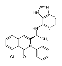 ANTINEOPLASTIC PI3K DELTA AND PI3K GAMMA KINASE INHIBITOR TREATMENT OF REFRACTORY CHRONIC LYMPHOCYTIC LEUKEMIA (CLL) | ORAL | Cmax 3.6 MICROMOLAR Tmax 1.5 HOUR F 42 PERCENT VD 28.5 LITER PPB 98 PERCENT Cl 4.2 LITER / HOUR HT 4.7 HOUR SOLUBILITY PRACTICALLY INSOLUBLE IN WATER | PI3K | Phosphatidylinositol 4,5-bisphosphate 3-kinase catalytic subunit delta isoform UNIPROT O00329 PIK3CD -- Phosphatidylinositol 4,5-bisphosphate 3-kinase catalytic subunit gamma isoform UNIPROT P48736 PIK3CG more at DrugCentral | EMA ANSM (in French) Inxight Drugs Dailymed Drugs.com VigiAccess SIDER side effects Chemical Probes Portal ChEMBL BindingDB DrugBank |