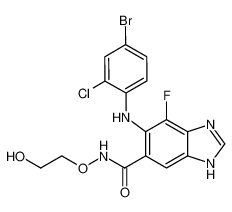 ANTINEOPLASTIC TREATMENT OF PEDIATRIC NEUROFIBROMAS (PN) MITOGEN-ACTIVATED PROTEIN KINASE KINASES 1 AND 2 INHIBITOR | ORAL | Cmax 1.74 MICROMOLAR Tmax 1.25 HOUR F 62 PERCENT VD 171 LITER PPB 98.4 PERCENT Cl 8.8 LITER / HOUR HT 6.2 HOUR SOLUBILITY SLIGHTLY SOLUBLE AT PH > 3 | MEK1 MEK2 PDB 4U7Z (MITOGEN-ACTIVATED PROTEIN KINASE KINASE (MEK1) BOUND TO G805) LIGAND CODE = 3EW (link to the list of PDB complexes) Download experimental 3D coordinates of 3EW with added hydrogens | Dual specificity mitogen-activated protein kinase kinase 1 UNIPROT Q02750 MAP2K1 -- Dual specificity mitogen-activated protein kinase kinase 2 UNIPROT P36507 MAP2K2 more at DrugCentral | EMA ANSM (in French) Inxight Drugs Dailymed Drugs.com VigiAccess SIDER side effects Chemical Probes Portal ChEMBL BindingDB DrugBank |