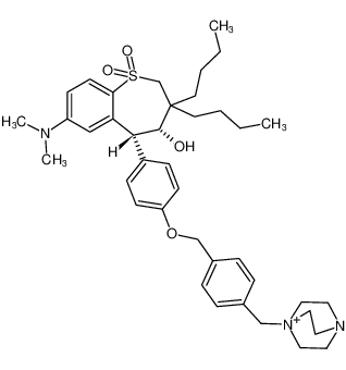 METABOLISM TREATMENT OF CHOLESTATIC PRURITUS IN PATIENTS WITH ALAGILLE SYNDROME (ALGS) ILEAL BILE ACID TRANSPORTER (IBAT) INHIBITOR | ORAL | Cmax 2.4 NANOMOLAR Tmax 0.75 HOUR PPB 91 PERCENT HT 1.6 HOUR | IBAT TRANSPORTER | Ileal sodium bile acid cotransporter UNIPROT Q12908 more at DrugCentral | EMA ANSM (in French) Inxight Drugs Dailymed Drugs.com VigiAccess SIDER side effects Chemical Probes Portal ChEMBL BindingDB DrugBank |