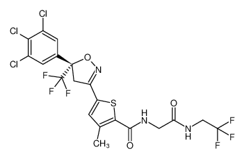 ANTIPARASITIC TREATMENT OF DEMODEX BLEPHARITIS GAMMA-AMINOBUTYRIC ACID (GABA)-GATED CHLORIDE CHANNEL INHIBITOR SELECTIVE FOR MITES (NOT AN INHIBITOR OF MAMMALIAN GABA) | OPHTHALMIC | Cmax 29.8 NANOMOLAR Tmax 2 HOUR PPB 99.9 PERCENT HT 264 HOUR | GAMMA-AMINOBUTYRIC ACID (GABA)-GATED CHLORIDE CHANNEL | Gaba-gated chloride channel, putative UNIPROT E0V9W2 8233868 more at DrugCentral | EMA ANSM (in French) Inxight Drugs Dailymed Drugs.com VigiAccess SIDER side effects Chemical Probes Portal ChEMBL BindingDB DrugBank |