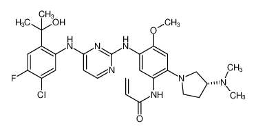 | SUNVOZERTINIB | ANTINEOPLASTIC EGFR KINASE INHIBITOR TREATMENT OF NON-SMALL CELL LUNG CANCER (NSCLC) | ORAL | Cmax 705 NANOMOLAR Tmax 6 HOUR VD 2116 LITER PPB 91 PERCENT Cl 29 LITER / HOUR HT 50 HOUR | EPIDERMAL GROWTH FACTOR RECEPTOR (EGFR) | - more at DrugCentral | EMA ANSM (in French) Inxight Drugs Dailymed Drugs.com VigiAccess SIDER side effects Chemical Probes Portal ChEMBL BindingDB DrugBank |