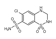CARDIOVASCULAR ANTIHYPERTENSIVE AGENTS DIURETICS MAY INVOLVE CARBONIC ANHYDRASE INHIBITION (PMID24352504) | ORAL | Cmax 454.2 NANOMOLAR Tmax 1.5 HOUR VD 370.5 LITER (65 KILOGRAM) PPB 67.9 PERCENT Cl 23 LITER / HOUR HT 4.5 HOUR SOLUBILITY SLIGHTLY SOLUBLE IN WATER | CARBONIC ANHYDRASE PDB 3IJX (CRYSTAL STRUCTURE OF THE AMPA SUBUNIT GLUR2 BOUND TO THE ALLOSTERIC MODULATOR, HYDROCHLOROTHIAZIDE) LIGAND CODE = HCZ (link to the list of PDB complexes) Download experimental 3D coordinates of HCZ with added hydrogens | Solute carrier family 12 member 3 UNIPROT P55017 SLC12A3 more at DrugCentral | EMA ANSM (in French) Inxight Drugs Dailymed Drugs.com VigiAccess SIDER side effects Chemical Probes Portal ChEMBL BindingDB DrugBank |