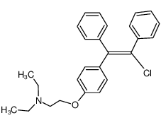 GENITO INITIATION OF OVULATION FERTILITY AGENTS, FEMALE ESTROGEN RECEPTOR ANTAGONIST ZUCLOMIPHENE (CIS) HAS A LONGER HALF-LIFE THAN ENCLOMIPHENE (TRANS) | ORAL | Cmax 17 NANOMOLAR (PMID18621671) SOLUBILITY SLIGHTLY SOLUBLE IN WATER | ESTROGEN RECEPTOR | Estrogen receptor UNIPROT P03372 ESR1 more at DrugCentral | EMA ANSM (in French) Inxight Drugs Dailymed Drugs.com VigiAccess SIDER side effects Chemical Probes Portal ChEMBL BindingDB DrugBank |