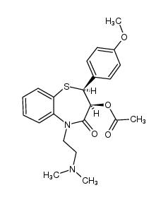 CARDIOVASCULAR CALCIUM ION CELLULAR INFLUX INHIBITOR CORONARY VASODILATOR ANTIHYPERTENSIVE AGENTS CALCIUM CHANNEL BLOCKERS | ORAL INJECTION INTRAVENOUS | F 40 PERCENT VD 266 LITER (65 KILOGRAM) PPB 75 PERCENT Cl 50.7 LITER / HOUR (65 KILOGRAM) HT 3.75 HOUR SOLUBILITY SOLUBLE IN WATER | VOLTAGE-DEPENDENT CALCIUM CHANNEL PDB 6JPB (RABBIT CAV1.1-DILTIAZEM COMPLEX) LIGAND CODE = C9F (link to the list of PDB complexes) Download experimental 3D coordinates of C9F with added hydrogens | Voltage-dependent L-type calcium channel subunit alpha-1C UNIPROT Q13936 CACNA1C more at DrugCentral | EMA ANSM (in French) Inxight Drugs Dailymed Drugs.com VigiAccess SIDER side effects Chemical Probes Portal ChEMBL BindingDB DrugBank |