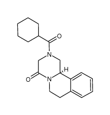 ANTIPARASITIC ANTHELMINTIC TREATMENT OF OF SCHISTOSOME INFECTIONS AND INFECTIONS DUE TO LIVER FLUKE ANTIMALARIALS | ORAL | Cmax 2.6 MICROMOLAR Tmax 2 HOUR F 80 PERCENT PPB 80 PERCENT HT 1.1 HOUR SOLUBILITY VERY SLIGHTLY SOLUBLE IN WATER | GLUTATHIONE S-TRANSFERASE PDB 1GTB (CRYSTAL STRUCTURES OF A SCHISTOSOMAL DRUG AND VACCINE TARGET: GLUTATHIONE S-TRANSFERASE FROM SCHISTOSOMA JAPONICA AND ITS COMPLEX WITH THE LEADING ANTISCHISTOSOMAL DRUG PRAZIQUANTEL) LIGAND CODE = PZQ (link to the list of PDB complexes) Download experimental 3D coordinates of PZQ with added hydrogens | High voltage-activated calcium channel beta subunit CavB1 UNIPROT Q95US7 -- High voltage-activated calcium channel beta subunit CavB2 UNIPROT Q962H3 more at DrugCentral | EMA ANSM (in French) Inxight Drugs Dailymed Drugs.com VigiAccess SIDER side effects Chemical Probes Portal ChEMBL BindingDB DrugBank |
