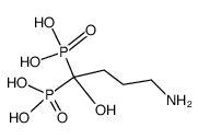METABOLISM BONE RESORPTION INHIBITOR BISPHOSPHONATE ANTIHYPOCALCEMIC AGENTS ANTIRESORPTIVES | ORAL | F 0.64 PERCENT VD 28 LITER PPB 78 PERCENT Cl 12 LITER / HOUR HT 87600 HOUR SOLUBILITY SOLUBLE IN WATER | FARNESYL PYROPHOSPHATE SYNTHASE PDB 5DZ2 (GEOSMIN SYNTHASE FROM STREPTOMYCES COELICOLOR N-TERMINAL DOMAIN COMPLEXED WITH THREE MG2+ IONS AND ALENDRONIC ACID) LIGAND CODE = 212 (link to the list of PDB complexes) Download experimental 3D coordinates of 212 with added hydrogens | Farnesyl pyrophosphate synthase UNIPROT P14324 FDPS more at DrugCentral | EMA ANSM (in French) Inxight Drugs Dailymed Drugs.com VigiAccess SIDER side effects Chemical Probes Portal ChEMBL BindingDB DrugBank |