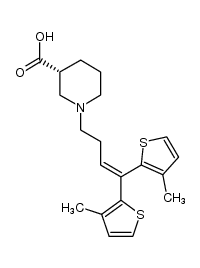 NERVOUS SYSTEM ANTICONVULSANT ENHANCE THE ACTIVITY OF GABA NEUROPROTECTIVE AGENTS | ORAL | Tmax 0.75 HOUR F 90 PERCENT VD 71.5 LITER (65 KILOGRAM) PPB 96 PERCENT Cl 6.5 LITER / HOUR HT 8 HOUR SOLUBILITY SPARINGLY SOLUBLE IN WATER | GAMMA AMINOBUTYRIC ACID (GABA) UPTAKE CARRIER PDB 7Y7Z (CRYO-EM STRUCTURE OF HUMAN GABA TRANSPORTER GAT1 BOUND WITH TIAGABINE IN NACL SOLUTION IN AN INWARD-OPEN STATE AT 3.2 ANGSTROM) LIGAND CODE = TGI (link to the list of PDB complexes) Download experimental 3D coordinates of TGI with added hydrogens | Sodium- and chloride-dependent GABA transporter 1 UNIPROT P30531 SLC6A1 more at DrugCentral | EMA ANSM (in French) Inxight Drugs Dailymed Drugs.com VigiAccess SIDER side effects Chemical Probes Portal ChEMBL BindingDB DrugBank |