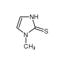 HORMONES TREATMENT OF HYPERTHYROIDISM INHIBITS THE SYNTHESIS OF THYROID HORMONES | ORAL | Cmax 1.3 MICROMOLAR (10 MILLIGRAM , PMID6642787) Tmax 0.9 HOUR VD 136 LITER (65 KILOGRAM , PMID3830069) Cl 4.6 LITER / HOUR (65 KILOGRAM) HT 5.4 HOUR SOLUBILITY FREELY SOLUBLE IN WATER | PDB 2GVC (CRYSTAL STRUCTURE OF FLAVIN-CONTAINING MONOOXYGENASE (FMO)FROM S.POMBE AND SUBSTRATE (METHIMAZOLE) COMPLEX) LIGAND CODE = MMZ (link to the list of PDB complexes) Download experimental 3D coordinates of MMZ with added hydrogens | Thyroid peroxidase UNIPROT P07202 TPO more at DrugCentral | EMA ANSM (in French) Inxight Drugs Dailymed Drugs.com VigiAccess SIDER side effects Chemical Probes Portal ChEMBL BindingDB DrugBank |