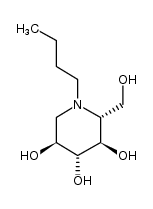METABOLISM TYPE 1 GAUCHER DISEASE GLUCOSYLCERAMIDE SYNTHASE INHIBITOR SYNTHESIS OF MOST GLYCOSPHINGOLIPIDS TREATMENT OF NIEMANN-PICK TYPE C DISEASE (DRUG FOR RARE DISEASE IN EUROPE) | ORAL | Tmax 2.25 HOUR F 97 PERCENT VD 94 LITER PPB 0 PERCENT HT 6.5 HOUR SOLUBILITY HIGHLY SOLUBLE IN WATER (> 1000 MILLIGRAM / MILLILITER) | GLUCOSYLCERAMIDE SYNTHASE PDB 2V3D (ACID-BETA-GLUCOSIDASE WITH N-BUTYL-DEOXYNOJIRIMYCIN) LIGAND CODE = NBV (link to the list of PDB complexes) Download experimental 3D coordinates of NBV with added hydrogens | Ceramide glucosyltransferase UNIPROT Q16739 UGCG more at DrugCentral | EMA ANSM (in French) Inxight Drugs Dailymed Drugs.com VigiAccess SIDER side effects Chemical Probes Portal ChEMBL BindingDB DrugBank |