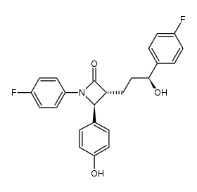 CARDIOVASCULAR HYPOLIPIDEMIC ANTICHOLESTEREMIC AGENTS INHIBITOR OF INTESTINAL CHOLESTEROL ABSORPTION | ORAL | Cmax 13.4 NANOMOLAR Tmax 8 HOUR PPB 90 PERCENT HT 22 HOUR SOLUBILITY PRACTICALLY INSOLUBLE IN WATER | NIEMANN-PICK C1-LIKE PROTEIN 1 (NPC1L1) PDB 8AXW (THE STRUCTURE OF MOUSE ASTERC (GRAMD1C) WITH EZETIMIBE) LIGAND CODE = H56 (link to the list of PDB complexes) Download experimental 3D coordinates of H56 with added hydrogens | Niemann-Pick C1-like protein 1 UNIPROT Q9UHC9 NPC1L1 more at DrugCentral | EMA ANSM (in French) Inxight Drugs Dailymed Drugs.com VigiAccess SIDER side effects Chemical Probes Portal ChEMBL BindingDB DrugBank |