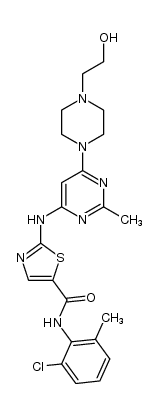 ANTINEOPLASTIC PROTEIN KINASE INHIBITORS TREATMENT OF CHRONIC MYELOID LEUKEMIA (CML) IN CHRONIC PHASE | ORAL | VD 2505 LITER PPB 96 PERCENT Cl 433 LITER / HOUR (EQN) HT 4 HOUR SOLUBILITY INSOLUBLE IN WATER | BCR-ABL ABL1 SRC FAMILY (SRC, LCK, YES, FYN) C-KIT EPHA2 PDGFR BETA PDB 2Y6O (CRYSTAL STRUCTURE OF EPHA4 KINASE DOMAIN IN COMPLEX WITH DASATINIB.) LIGAND CODE = 1N1 (link to the list of PDB complexes) Download experimental 3D coordinates of 1N1 with added hydrogens | Platelet-derived growth factor receptor beta UNIPROT P09619 PDGFRB -- Tyrosine-protein kinase ABL1 UNIPROT P00519 ABL1 more at DrugCentral | EMA ANSM (in French) Inxight Drugs Dailymed Drugs.com VigiAccess SIDER side effects Chemical Probes Portal ChEMBL BindingDB DrugBank |