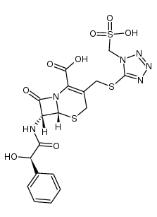 ANTIINFECTIVES ANTIBACTERIAL ANTIBIOTIC CEPHALOSPORINS | INJECTION | Cmax 597 MICROMOLAR VD 455 LITER PPB 83 PERCENT (PMID3789691) Cl 87 LITER / HOUR HT 5.1 HOUR | PENICILLIN-BINDING PROTEINS 1A/1B | Bacterial penicillin-binding protein UNIPROT P02918 mrcA more at DrugCentral | EMA ANSM (in French) Inxight Drugs Dailymed Drugs.com VigiAccess SIDER side effects Chemical Probes Portal ChEMBL BindingDB DrugBank |