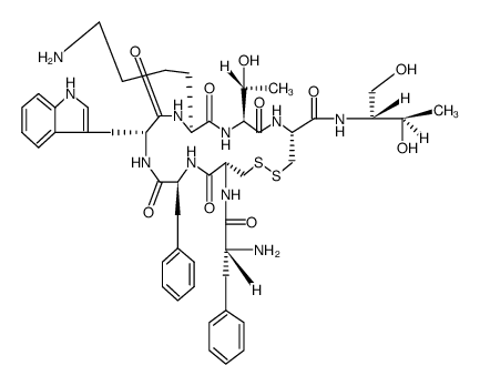 HORMONES HORMONE REPLACEMENT AGENTS SOMATOSTATIN MIMICK REDUCE BLOOD LEVELS OF GROWTH HORMONE AND IGF-I (SOMATOMEDIN C) IN ACROMEGALY PATIENTS SYMPTOMATIC TREATMENT | INJECTION ORAL SUBCUTANEOUS | Cmax 5.1 NANOMOLAR (100 MICROGRAM) VD 13.6 LITER PPB 65 PERCENT Cl 8.5 LITER / HOUR HT 1.8 HOUR | SOMATOSTATIN RECEPTOR TYPE 1 SOMATOSTATIN RECEPTOR TYPE 5 SUBSTANCE-K RECEPTOR | Somatostatin receptor type 2 UNIPROT P30874 SSTR2 -- Somatostatin receptor type 3 UNIPROT P32745 SSTR3 more at DrugCentral | EMA ANSM (in French) Inxight Drugs Dailymed Drugs.com VigiAccess SIDER side effects Chemical Probes Portal ChEMBL BindingDB DrugBank |