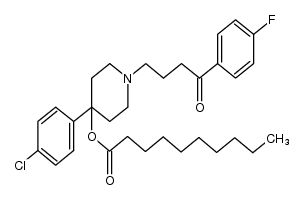 NERVOUS SYSTEM ANTIPSYCHOTIC DOPAMINE ANTAGONIST DECANOATE ESTER OF THE BUTYROPHENONE BLOCKS THE EFFECTS OF DOPAMINE THE TREATMENT OF SCHIZOPHRENIC PATIENTS BUTYROPHENONE DERIVATIVES | INJECTION | SOLUBILITY ALMOST INSOLUBLE IN WATER 0.01 MILLIGRAM / MILLILITER | DOPAMINE D2 RECEPTOR | D(2) dopamine receptor UNIPROT P14416 DRD2 -- D(2) dopamine receptor UNIPROT P14416 DRD2 more at DrugCentral | EMA ANSM (in French) Inxight Drugs Dailymed Drugs.com VigiAccess SIDER side effects Chemical Probes Portal ChEMBL BindingDB DrugBank |