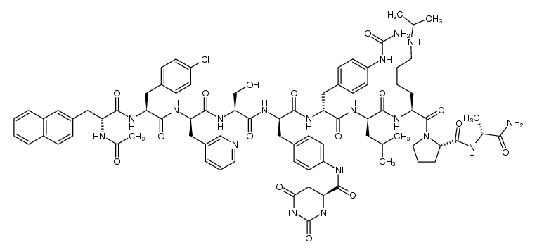 ANTINEOPLASTIC PROSTATE CANCER GONADOTROPIN-RELEASING HORMONE (GNRH) ANTAGONIST IT BINDS REVERSIBLY TO THE PITUITARY GNRH RECEPTORS THEREBY REDUCING THE RELEASE OF GONADOTROPINS AND CONSEQUENTLY TESTOSTERONE | SUBCUTANEOUS INJECTION | Cmax 16 NANOMOLAR (240 MILLIGRAM) VD 1000 LITER PPB 90 PERCENT Cl 9 LITER / HOUR HT 1272 HOUR | GONADOTROPIN-RELEASING HORMONE | Gonadotropin-releasing hormone receptor UNIPROT P30968 GNRHR more at DrugCentral | EMA ANSM (in French) Inxight Drugs Dailymed Drugs.com VigiAccess SIDER side effects Chemical Probes Portal ChEMBL BindingDB DrugBank |
