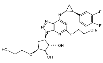 BLOOD P2Y12 PLATELET INHIBITOR ANTITHROMBOTIC AGENTS | ORAL | Cmax 1.76 MICROMOLAR (200 MILLIGRAM) DOI:10.1124/DMD.110.032250 F 36 PERCENT VD 88 LITER PPB 99 PERCENT Cl 8.7 LITER / HOUR (EQN) HT 7 HOUR SOLUBILITY AQUEOUS SOLUBILITY OF APPROXIMATELY 10 MICROGRAM / MILLILITER AT ROOM TEMPERATURE | P2Y12 ADP-RECEPTOR PDB 5ALC (TICAGRELOR ANTIDOTE CANDIDATE FAB 72 IN COMPLEX WITH TICAGRELOR) LIGAND CODE = TIQ (link to the list of PDB complexes) Download experimental 3D coordinates of TIQ with added hydrogens | P2Y purinoceptor 12 UNIPROT Q9H244 P2RY12 more at DrugCentral | EMA ANSM (in French) Inxight Drugs Dailymed Drugs.com VigiAccess SIDER side effects Chemical Probes Portal ChEMBL BindingDB DrugBank |