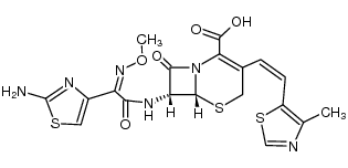 ANTIINFECTIVES ANTIBIOTIC ANTIBACTERIAL CEPHALOSPORINS INHIBITORS | - | Cmax 3.55 MICROMOLAR (200 MILLIGRAM) VD 9.3 LITER PPB 88 PERCENT Cl 4.5 LITER / HOUR HT 1.6 HOUR | PENICILLIN-BINDING PROTEIN | Bacterial penicillin-binding protein UNIPROT P02918 mrcA more at DrugCentral | EMA ANSM (in French) Inxight Drugs Dailymed Drugs.com VigiAccess SIDER side effects Chemical Probes Portal ChEMBL BindingDB DrugBank |