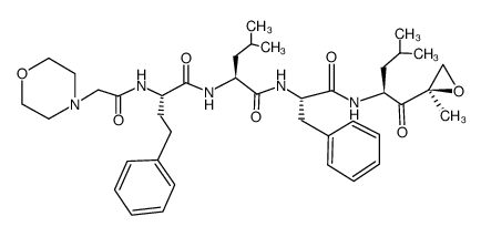 ANTINEOPLATIC TREATMENT OF MULTIPLE MYELOMA PROTEASOME INHIBITOR THAT IRREVERSIBLY (COVALENTLY) BINDS TO THE N-TERMINAL THREONINE-CONTAINING ACTIVE SITES OF THE 20S PROTEASOME | INTRAVENOUS INJECTION | Cmax 5.8 MICROMOLAR VD 28 LITER PPB 97 PERCENT Cl 207 LITER / HOUR HT 1 HOUR SOLUBILITY PRACTICALLY INSOLUBLE IN WATER | 20S PROTEASOME | Proteasome subunit beta type-5 UNIPROT P28074 PSMB5 more at DrugCentral | EMA ANSM (in French) Inxight Drugs Dailymed Drugs.com VigiAccess SIDER side effects Chemical Probes Portal ChEMBL BindingDB DrugBank |