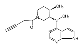 IMMUNOMODULATING INHIBITOR OF JANUS KINASES (JAKS) TREATMENT OF RHEUMATOID ARTHRITIS | ORAL | F 74 PERCENT VD 87 LITER PPB 40 PERCENT Cl 20 LITER / HOUR (EQN) HT 3 HOUR SOLUBILITY FREELY SOLUBLE IN WATER | JANUS KINASES (JAK) PDB 3LXK (STRUCTURAL AND THERMODYNAMIC CHARACTERIZATION OF THE TYK2 AND JAK3 KINASE DOMAINS IN COMPLEX WITH CP-690550 AND CMP-6) LIGAND CODE = MI1 (link to the list of PDB complexes) Download experimental 3D coordinates of MI1 with added hydrogens | JAK1,TYK2 UNIPROT P23458 JAK1 -- JAK2,TYK2 UNIPROT O60674 JAK2 more at DrugCentral | EMA ANSM (in French) Inxight Drugs Dailymed Drugs.com VigiAccess SIDER side effects Chemical Probes Portal ChEMBL BindingDB DrugBank |