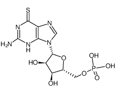 ANTINEOPLASTIC ANTIMETABOLITES TREATMENT OF ACUTE NONLYMPHOCYTIC LEUKEMIAS THIOGUANINE IS INCORPORATED INTO THE DNA AND THE RNA OF HUMAN BONE MARROW CELLS THIOGUANYLIC ACID IS FURTHER CONVERTED TO THE DI- AND TRI-PHOSPHATES | - | | IMP DEHYDROGENASE GLUTAMINE-5-PHOSPHORIBOSYLPYROPHOSPHATE AMIDOTRANSFERASE | Inosine-5-monophosphate dehydrogenase 1 UNIPROT P20839 IMPDH1 -- Inosine-5-monophosphate dehydrogenase 2 UNIPROT P12268 IMPDH2 more at DrugCentral | EMA ANSM (in French) Inxight Drugs Dailymed Drugs.com VigiAccess SIDER side effects Chemical Probes Portal ChEMBL BindingDB DrugBank |