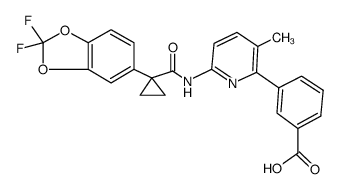 RESPIRATORY SYSTEM CYSTIC FIBROSIS POTENTIATOR IMPROVES THE CONFORMATIONAL STABILITY OF F508DEL-CFTR RESULTING IN INCREASED PROCESSING AND TRAFFICKING OF MATURE PROTEIN TO THE CELL SURFACE | ORAL | Cmax 55.3 MICROMOLAR Tmax 4 HOUR VD 86 LITER PPB 99 PERCENT Cl 2.38 LITER / HOUR HT 25.2 HOUR SOLUBILITY PRACTICALLY INSOLUBLE IN WATER | CFTR CYSTIC FIBROSIS TRANSMEMBRANE CONDUCTANCE REGULATOR PDB 7SVD (THE COMPLEX OF PHOSPHORYLATED HUMAN CYSTIC FIBROSIS TRANSMEMBRANE CONDUCTANCE REGULATOR (CFTR) WITH ATP, MG AND LUMACAFTOR (VX-809)) LIGAND CODE = VX8 (link to the list of PDB complexes) Download experimental 3D coordinates of VX8 with added hydrogens | Cystic fibrosis transmembrane conductance regulator UNIPROT P13569 CFTR more at DrugCentral | EMA ANSM (in French) Inxight Drugs Dailymed Drugs.com VigiAccess SIDER side effects Chemical Probes Portal ChEMBL BindingDB DrugBank |