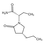NERVOUS SYSTEM TREATMENT OF PARTIAL-ONSET SEIZURES ANTIEPILEPTIC HIGH AND SELECTIVE AFFINITY FOR SYNAPTIC VESICLE PROTEIN 2A (SV2A) IN THE BRAIN | ORAL INTRAVENOUS | Tmax 1 HOUR VD 32.5 LITER (65 KILOGRAM) PPB 20 PERCENT HT 9 HOUR SOLUBILITY VERY SOLUBLE IN WATER | SYNAPTIC VESICLE GLYCOPROTEIN 2A (SV2A) PDB 8K77 (CRYO-EM STRUCTURE OF SV2A IN COMPLEX WITH BONT, A2 HC AND BRIVARACETAM) LIGAND CODE = VLX (link to the list of PDB complexes) Download experimental 3D coordinates of VLX with added hydrogens | Synaptic vesicle glycoprotein 2A UNIPROT Q7L0J3 SV2A more at DrugCentral | EMA ANSM (in French) Inxight Drugs Dailymed Drugs.com VigiAccess SIDER side effects Chemical Probes Portal ChEMBL BindingDB DrugBank |