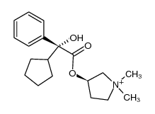 METABOLISM ANTICHOLINERGIC COMPETITIVE INHIBITOR OF ACETYLCHOLINE RECEPTORS TREATMENT OF PRIMARY AXILLARY HYPERHIDROSIS | TOPICAL | Cmax 0.25 NANOMOLAR Tmax 1 HOUR VD 27.3 LITER (65 KILOGRAM) | MUSCARINIC ACETYLCHOLINE RECEPTOR | Muscarinic acetylcholine receptor M1 UNIPROT P11229 CHRM1 -- Muscarinic acetylcholine receptor M2 UNIPROT P08172 CHRM2 more at DrugCentral | EMA ANSM (in French) Inxight Drugs Dailymed Drugs.com VigiAccess SIDER side effects Chemical Probes Portal ChEMBL BindingDB DrugBank |