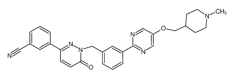 ANTINEOPLASTIC MET INHIBITOR TREATMENT OF METASTATIC NON-SMALL CELL LUNG CANCER (NSCLC) INHIBITS MELATONIN 2 RECEPTOR AND IMIDAZOLINE 1 RECEPTOR | ORAL | Cmax 2.62 MICROMOLAR Tmax 8 HOUR F 71.6 PERCENT VD 1038 LITER PPB 98 PERCENT Cl 23.8 LITER / HOUR HT 32 HOUR | MET KINASE PDB 4R1V (IDENTIFICATION AND OPTIMIZATION OF PYRIDAZINONES AS POTENT AND SELECTIVE C-MET KINASE INHIBITORS) LIGAND CODE = 3E8 (link to the list of PDB complexes) Download experimental 3D coordinates of 3E8 with added hydrogens | Hepatocyte growth factor receptor UNIPROT P08581 MET more at DrugCentral | EMA ANSM (in French) Inxight Drugs Dailymed Drugs.com VigiAccess SIDER side effects Chemical Probes Portal ChEMBL BindingDB DrugBank |