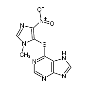 ANTINEOPLASTIC IMMUNOSUPPRESSIVE ANTIMETABOLITES ANTIRHEUMATIC AGENTS AZATHIOPRINE IS METABOLIZED TO 6-MERCAPTOPURINE (6-MP) AND THEN BY HYPOXANTHINE-GUANINE PHOSPHORIBOSYLTRANSFERASE (HGPRT) AND DIVERSES KINASES WHICH LEAD TO THE INCORPORATION OF 6-THIOGUANINE NUCLEOTIDES (6-TGN) INTO DNA | ORAL INJECTION | Tmax 1.5 HOUR PPB 30 PERCENT SOLUBILITY INSOLUBLE IN WATER | DNA | Unknown more at DrugCentral | EMA ANSM (in French) Inxight Drugs Dailymed Drugs.com VigiAccess SIDER side effects Chemical Probes Portal ChEMBL BindingDB DrugBank |