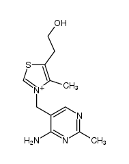 METABOLISM ANTI-INFLAMMATORY AGENTS VITAMIN B1 | INJECTION INTRAVENOUS | Cmax 385 NANOMOLAR (PMID22305197) Tmax 4.14 HOUR SOLUBILITY FREELY SOLUBLE IN WATER | PDB 3MYU (MYCOPLASMA GENITALIUM MG289) LIGAND CODE = VIB (link to the list of PDB complexes) Download experimental 3D coordinates of VIB with added hydrogens | Heat shock protein HSP 90-alpha UNIPROT P07900 HSP90AA1 more at DrugCentral | EMA ANSM (in French) Inxight Drugs Dailymed Drugs.com VigiAccess SIDER side effects Chemical Probes Portal ChEMBL BindingDB DrugBank |