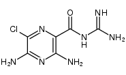 CARDIOVASCULAR POTASSIUM CONSERVING AGENT SODIUM CHANNEL BLOCKERS CYSTIC FIBROSIS | ORAL | Tmax 3.5 HOUR HT 7.5 HOUR | AMILORIDE-SENSITIVE SODIUM CHANNEL UROKINASE-TYPE PLASMINOGEN ACTIVATOR PDB 4NTX (STRUCTURE OF ACID-SENSING ION CHANNEL IN COMPLEX WITH SNAKE TOXIN AND AMILORIDE) LIGAND CODE = AMR (link to the list of PDB complexes) Download experimental 3D coordinates of AMR with added hydrogens | Amiloride-sensitive sodium channel, ENaC UNIPROT P37088 SCNN1A more at DrugCentral | EMA ANSM (in French) Inxight Drugs Dailymed Drugs.com VigiAccess SIDER side effects Chemical Probes Portal ChEMBL BindingDB DrugBank |