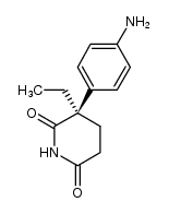 ANTINEOPLASTIC AROMATASE INHIBITORS INHIBITOR OF ADRENOCORTICAL STEROID SYNTHESIS ANTICONVULSANT (WITHDRAWN) SUPPRESSION OF ADRENAL FUNCTION IN SELECTED PATIENTS WITH CUSHINGS SYNDROME | ORAL | Cmax 25.4 MICROMOLAR Tmax 1.5 HOUR F 100 PERCENT HT 12.5 HOUR SOLUBILITY VERY SLIGHTLY SOLUBLE IN WATER | CYTOCHROME P450 PDB 5OH1 (CEREBLON ISOFORM 4 FROM MAGNETOSPIRILLUM GRYPHISWALDENSE IN COMPLEX WITH AMINOGLUTETHIMIDE) LIGAND CODE = 9UQ (link to the list of PDB complexes) Download experimental 3D coordinates of 9UQ with added hydrogens | Aromatase UNIPROT P11511 CYP19A1 -- Cholesterol side-chain cleavage enzyme, mitochondrial UNIPROT P05108 CYP11A1 more at DrugCentral | EMA ANSM (in French) Inxight Drugs Dailymed Drugs.com VigiAccess SIDER side effects Chemical Probes Portal ChEMBL BindingDB DrugBank |