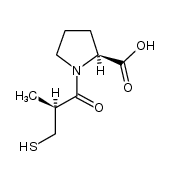 CARDIOVASCULAR ANTIHYPERTENSIVE ANGIOTENSIN-CONVERTING ENZYME INHIBITORS | ORAL | Tmax 1 HOUR F 75 PERCENT VD 48.7 LITER (65 KILOGRAM) PPB 27 PERCENT Cl 46.8 LITER / HOUR (65 KILOGRAM) HT 2 HOUR SOLUBILITY SOLUBLE IN WATER (160 MILLIGRAM / MILLILITER) | ANGIOTENSIN-CONVERTING ENZYME (ACE) PDB 1UZF (COMPLEX OF THE ANTI-HYPERTENSIVE DRUG CAPTOPRIL AN THE HUMAN TESTICULAR ANGIOTENSIN I-CONVERTING ENZYME) LIGAND CODE = MCO (link to the list of PDB complexes) Download experimental 3D coordinates of MCO with added hydrogens | Angiotensin-converting enzyme UNIPROT P12821 ACE more at DrugCentral | EMA ANSM (in French) Inxight Drugs Dailymed Drugs.com VigiAccess SIDER side effects Chemical Probes Portal ChEMBL BindingDB DrugBank |